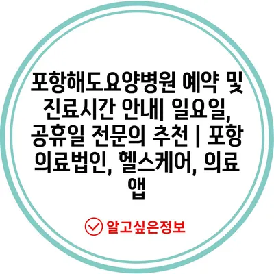 ✅ 포항해도요양병원의 예약 방법과 진료 시간을 지금 알아보세요.