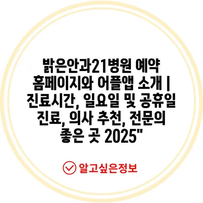 밝은안과21병원 예약 홈페이지와 어플앱 소개 | 진료시간, 일요일 및 공휴일 진료, 의사 추천, 전연락 좋은 곳 2025″ 에 대해 자주 묻는 질문 TOP 5