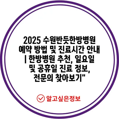 2025 수원반듯한방병원 예약 방법 및 진료시간 공지 | 한방병원 추천, 일요일 및 공휴일 진료 정보, 전연락 찾아보기