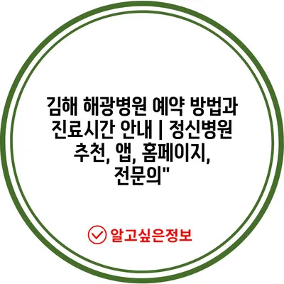 ✅ 김해 해광병원 예약 방법과 진료시간을 자세히 알아보세요.