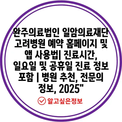 완주의료법인 일암의료재단 고려병원 예약 홈페이지 및 앱 사용법| 진료시간, 일요일 및 공휴일 진료 정보 포함 | 병원 추천, 전문의 정보, 2025″