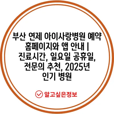 부산 연제 아이사랑병원 예약 홈페이지와 앱 공지 | 진료시간, 일요일 공휴일, 전연락 추천, 2025년 인기 병원 에 대해 자주 묻는 질문 TOP 5