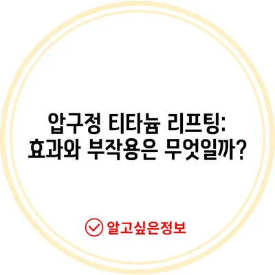💡 압구정 티타늄 리프팅의 효과와 부작용을 자세히 알아보세요. 💡