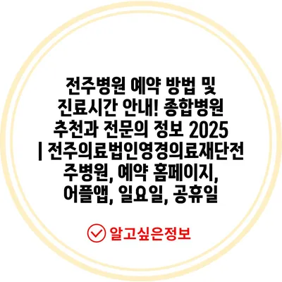 ✅ 전주병원 예약 방법과 진료시간을 쉽게 알아보세요!
