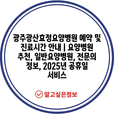 광주광산효정요양병원 예약 및 진료시간 공지 | 요양병원 추천, 일반요양병원, 전연락 정보, 2025년 공휴일 서비스 에 대해 자주 묻는 질문 TOP 5