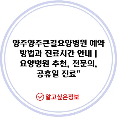 ✅ 양주양주큰길요양병원의 예약 방법과 혜택을 알아보세요.