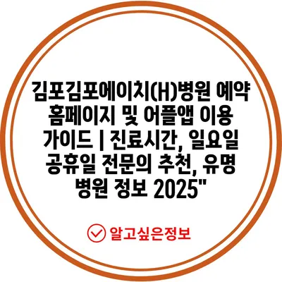 ✅ 김포김포에이치병원의 예약과 진료 정보가 궁금하다면 클릭하세요!