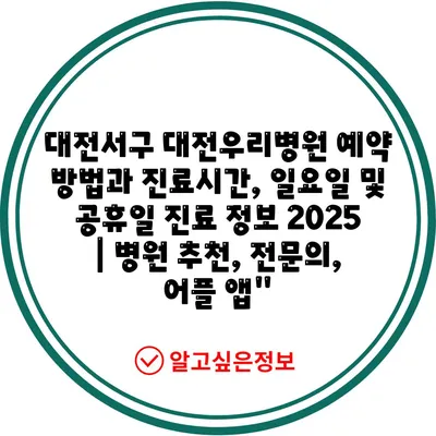 대전서구 대전우리병원 예약 방법과 진료시간, 일요일 및 공휴일 진료 정보 2025 | 병원 추천, 전문의, 어플 앱”
