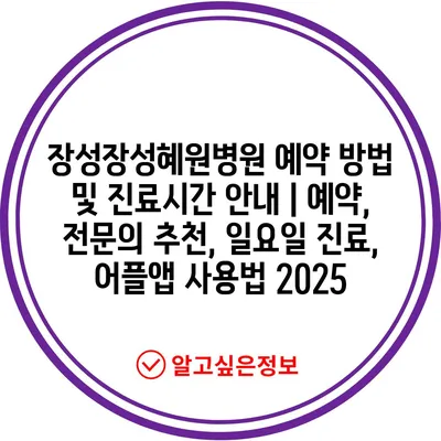 장성장성혜원병원 예약 방법 및 진료시간 공지 | 예약, 전연락 추천, 일요일 진료, 어플앱 사용법 2025 에 대해 자주 묻는 질문 TOP 5