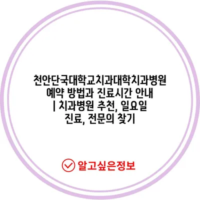 ✅ 천안단국대학교치과대학의 진료시간과 예약 방법을 지금 바로 알아보세요!