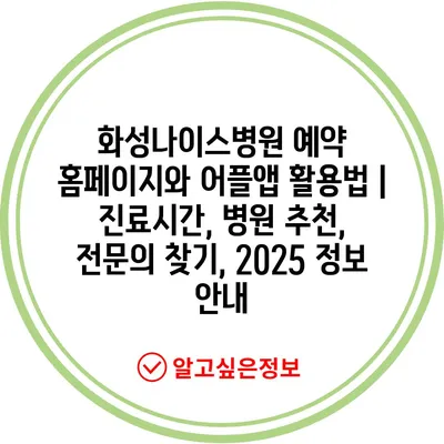 화성나이스병원 예약 홈페이지와 어플앱 활용법 | 진료시간, 병원 추천, 전연락 찾기, 2025 정보 공지에 대해 알아보겠습니다.