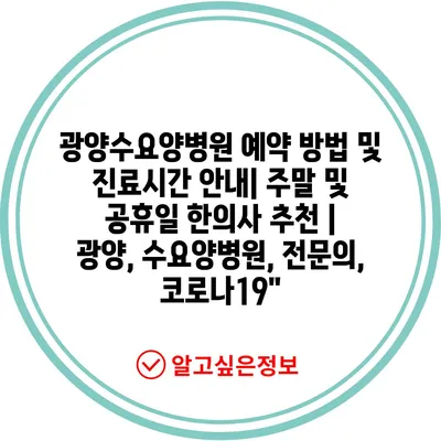 광양수요양병원 예약 방법 및 진료시간 안내| 주말 및 공휴일 한의사 추천 | 광양, 수요양병원, 전문의, 코로나19″