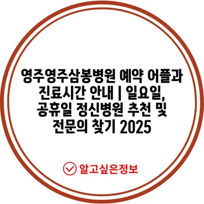 영주영주삼봉병원 예약 어플과 진료시간 안내 | 일요일, 공휴일 정신병원 추천 및 전문의 찾기 2025