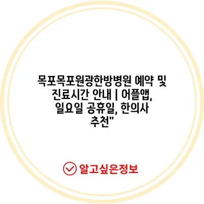 ✅ 목포원광한방병원의 진료시간과 예약 방법을 지금 바로 살펴보세요.