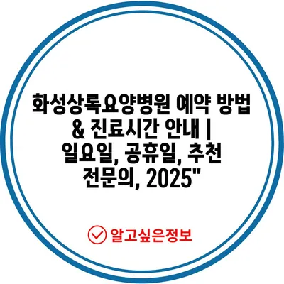 화성상록요양병원 예약 방법 & 진료시간 공지 | 일요일, 공휴일, 추천 전연락, 2025″ 에 대해 자주 묻는 질문 TOP 5