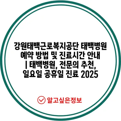 강원태백근로복지공단 태백병원 예약 방법 및 진료시간 안내 | 태백병원, 전문의 추천, 일요일 공휴일 진료 2025