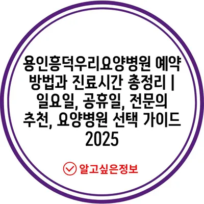 용인흥덕우리요양병원 예약 방법과 진료시간 총정리 | 일요일, 공휴일, 전문의 추천, 요양병원 선택 가이드 2025