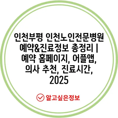 인천부평 인천노인전문병원 예약&진료정보 총정리 | 예약 홈페이지, 어플앱, 의사 추천, 진료시간, 2025