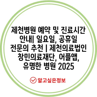 제천병원 예약 및 진료시간 안내| 일요일, 공휴일 전문의 추천 | 제천의료법인 창민의료재단, 어플앱, 유명한 병원 2025