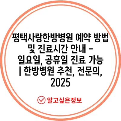 평택사랑한방병원 예약 방법 및 진료시간 안내 – 일요일, 공휴일 진료 가능 | 한방병원 추천, 전문의, 2025