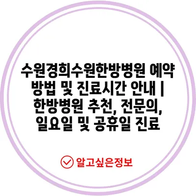 수원경희수원한방병원 예약 방법 및 진료시간 안내 | 한방병원 추천, 전문의, 일요일 및 공휴일 진료