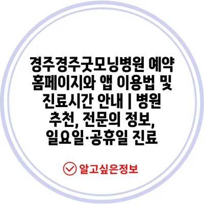 경주경주굿모닝병원 예약 홈페이지와 앱 이용법 및 진료시간 안내 | 병원 추천, 전문의 정보, 일요일·공휴일 진료
