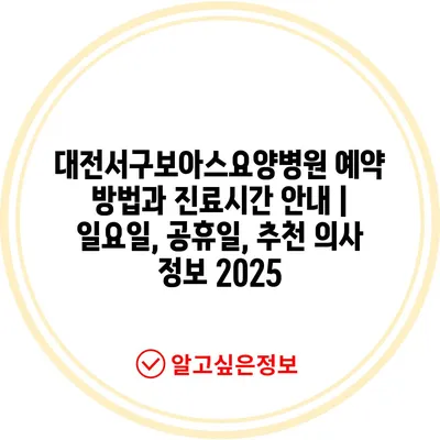 대전서구보아스요양병원 예약 방법과 진료시간 안내 | 일요일, 공휴일, 추천 의사 정보 2025