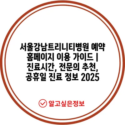 서울강남트리니티병원 예약 홈페이지 이용 가이드 | 진료시간, 전문의 추천, 공휴일 진료 정보 2025