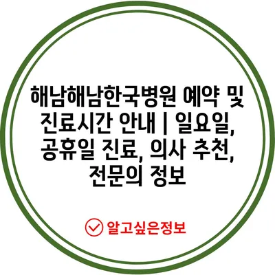 해남해남한국병원 예약 및 진료시간 안내 | 일요일, 공휴일 진료, 의사 추천, 전문의 정보