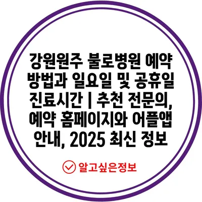 강원원주 불로병원 예약 방법과 일요일 및 공휴일 진료시간 | 추천 전문의, 예약 홈페이지와 어플앱 안내, 2025 최신 정보