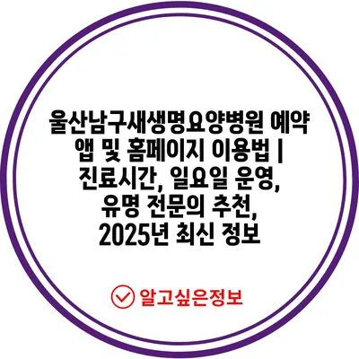 울산남구새생명요양병원 예약 앱 및 홈페이지 이용법 | 진료시간, 일요일 운영, 유명 전문의 추천, 2025년 최신 정보