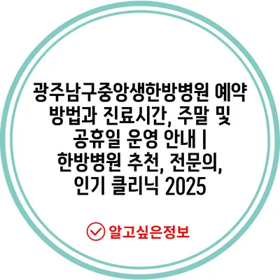 광주남구중앙생한방병원 예약 방법과 진료시간, 주말 및 공휴일 운영 안내 | 한방병원 추천, 전문의, 인기 클리닉 2025