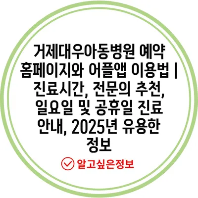 거제대우아동병원 예약 홈페이지와 어플앱 이용법 | 진료시간, 전문의 추천, 일요일 및 공휴일 진료 안내, 2025년 유용한 정보