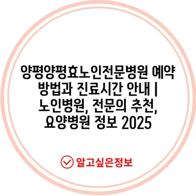 양평양평효노인전문병원 예약 방법과 진료시간 안내 | 노인병원, 전문의 추천, 요양병원 정보 2025