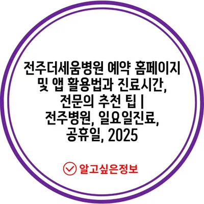 전주더세움병원 예약 홈페이지 및 앱 활용법과 진료시간, 전문의 추천 팁 | 전주병원, 일요일진료, 공휴일, 2025