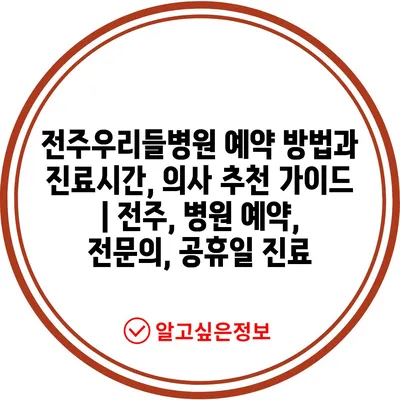 전주우리들병원 예약 방법과 진료시간, 의사 추천 가이드 | 전주, 병원 예약, 전문의, 공휴일 진료
