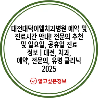 대전대덕이엘치과병원 예약 및 진료시간 안내! 전문의 추천 및 일요일, 공휴일 진료 정보 | 대전, 치과, 예약, 전문의, 유명 클리닉 2025