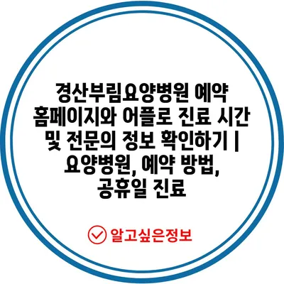 경산부림요양병원 예약 홈페이지와 어플로 진료 시간 및 전문의 정보 확인하기 | 요양병원, 예약 방법, 공휴일 진료