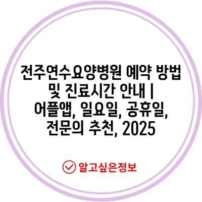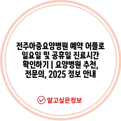전주아중요양병원 예약 어플로 일요일 및 공휴일 진료시간 확인하기 | 요양병원 추천, 전문의, 2025 정보 안내