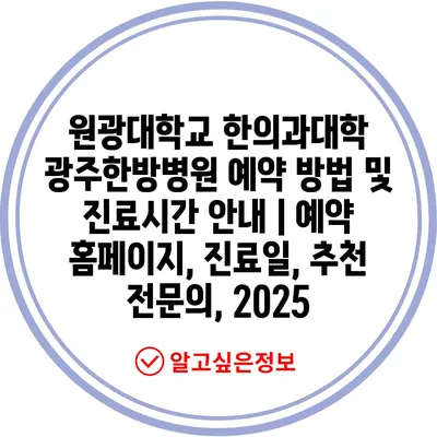 원광대학교 한의과대학 광주한방병원 예약 방법 및 진료시간 안내 | 예약 홈페이지, 진료일, 추천 전문의, 2025