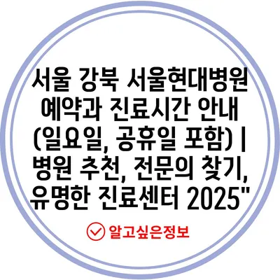 서울 강북 서울현대병원 예약과 진료시간 안내 (일요일, 공휴일 포함) | 병원 추천, 전문의 찾기, 유명한 진료센터 2025″