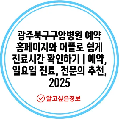 광주북구구암병원 예약 홈페이지와 어플로 쉽게 진료시간 확인하기 | 예약, 일요일 진료, 전문의 추천, 2025