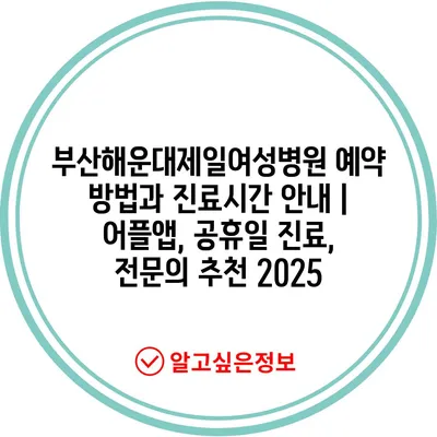부산해운대제일여성병원 예약 방법과 진료시간 안내 | 어플앱, 공휴일 진료, 전문의 추천 2025