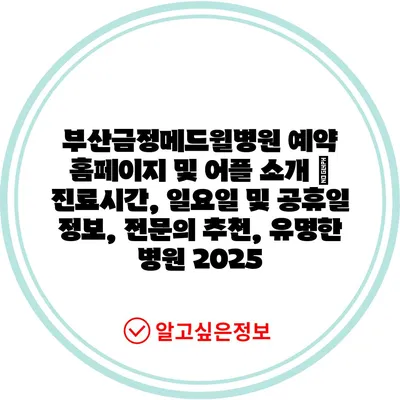 부산금정메드윌병원 예약 홈페이지 및 어플 소개 | 진료시간, 일요일 및 공휴일 정보, 전문의 추천, 유명한 병원 2025