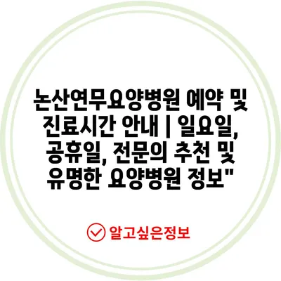 논산연무요양병원 예약 및 진료시간 안내 | 일요일, 공휴일, 전문의 추천 및 유명한 요양병원 정보”