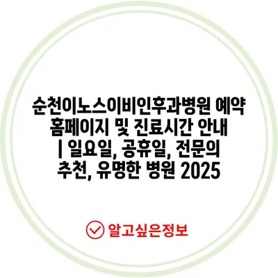 순천이노스이비인후과병원 예약 홈페이지 및 진료시간 안내 | 일요일, 공휴일, 전문의 추천, 유명한 병원 2025