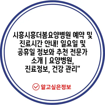 시흥시흥더봄요양병원 예약 및 진료시간 안내! 일요일 및 공휴일 정보와 추천 전문가 소개 | 요양병원, 진료정보, 건강 관리”