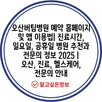 오산버팀병원 예약 홈페이지 및 앱 이용법| 진료시간, 일요일, 공휴일 병원 추천과 전문의 정보 2025 | 오산, 진료, 헬스케어, 전문의 안내