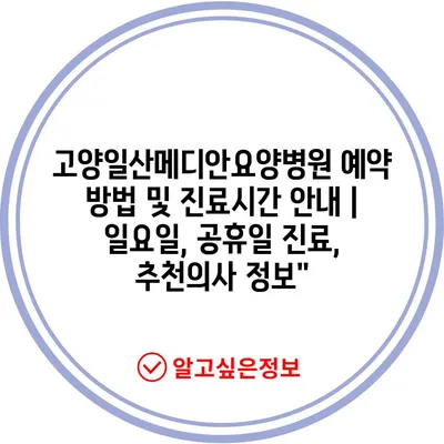 고양일산메디안요양병원 예약 방법 및 진료시간 안내 | 일요일, 공휴일 진료, 추천의사 정보”