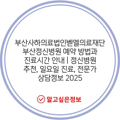 부산사하의료법인벧엘의료재단 부산정신병원 예약 방법과 진료시간 안내 | 정신병원 추천, 일요일 진료, 전문가 상담정보 2025